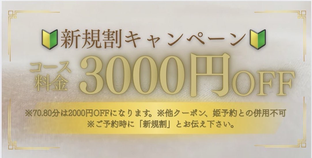 ご予約時に『新規割』『早割』とお伝え下さい。